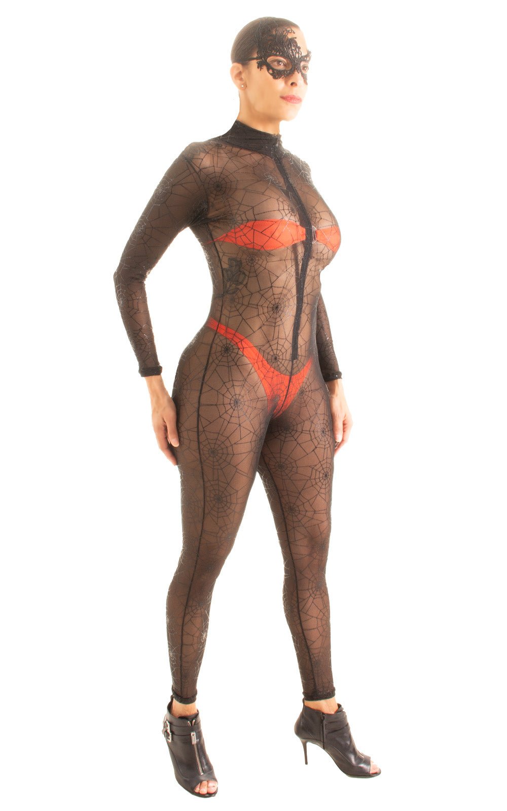 C1FZW - Womens Front Zipper Catsuit for Women - Mesh