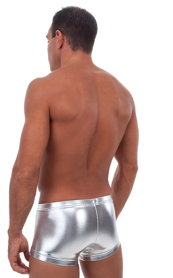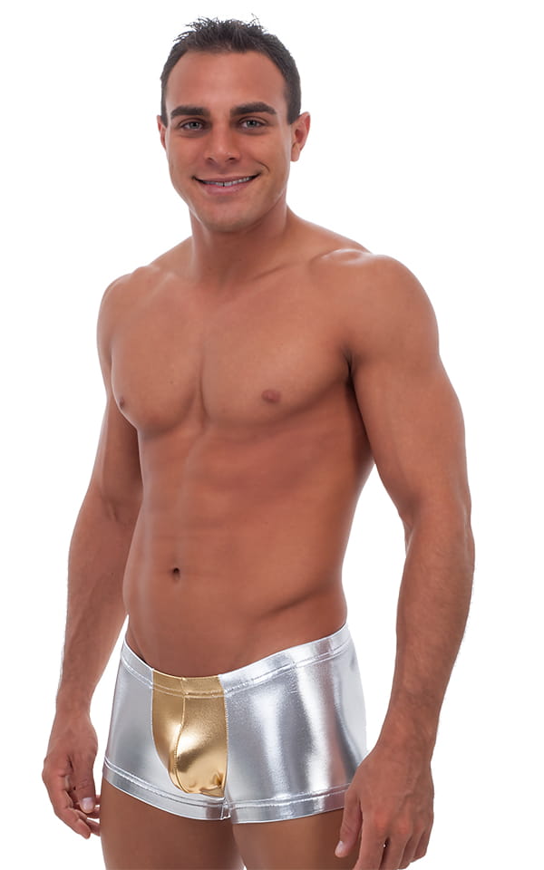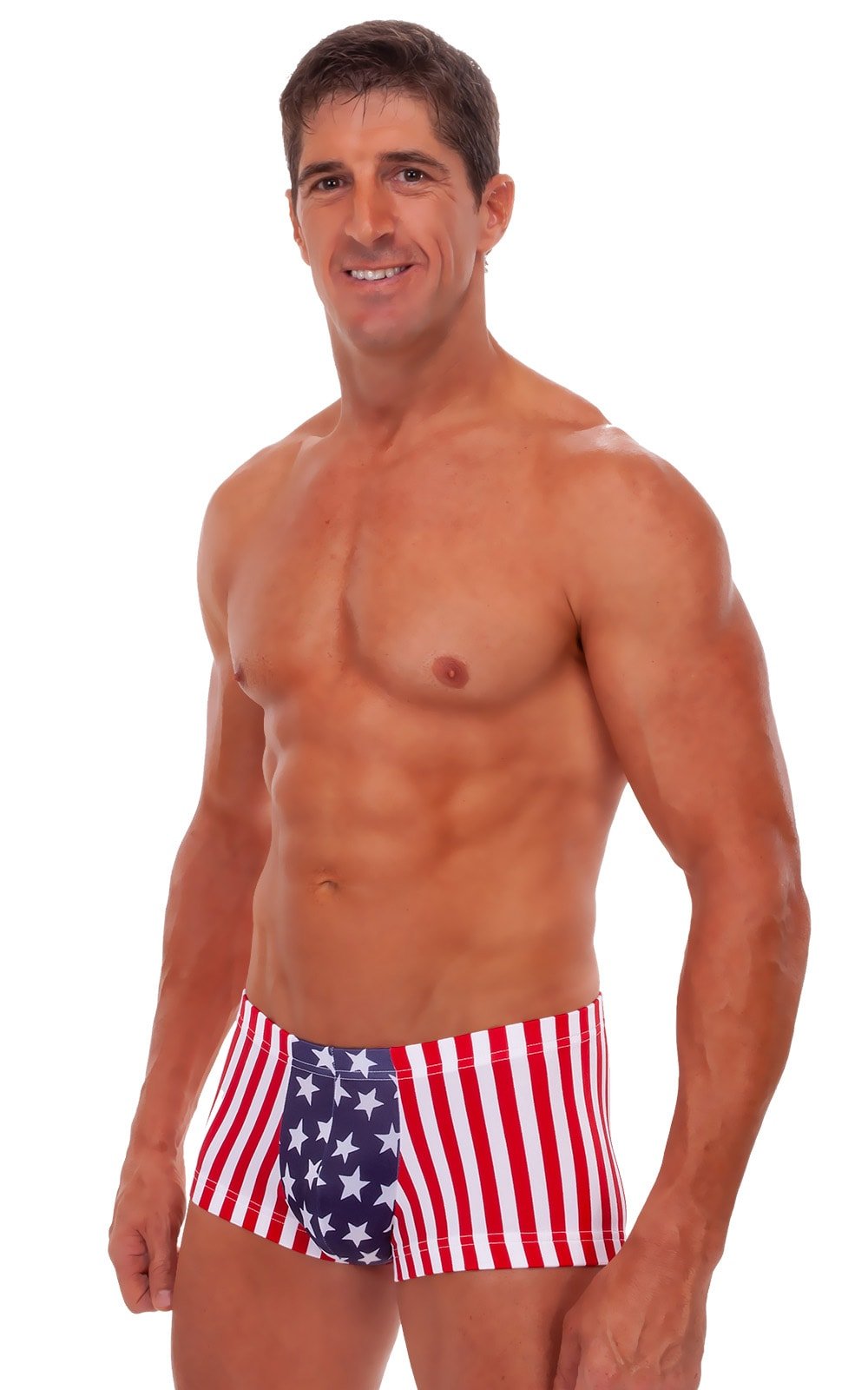 • A men's low cut boxer swimsuit with 4 front panels for a form fit