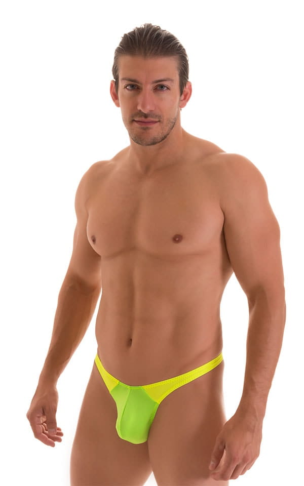 M87 - Mens Color Blocked T Back Thong - Solid Sheer Semi Sheer