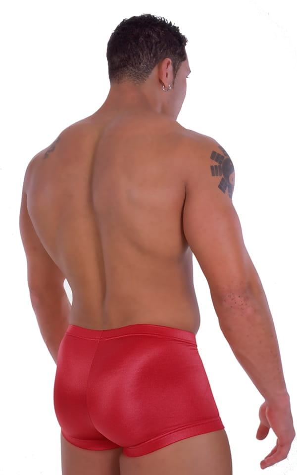 • A men's boxer swimsuit with 4 front panels for a package form fit • The front panels can be special ordered with alternate fabrics to provide contrast