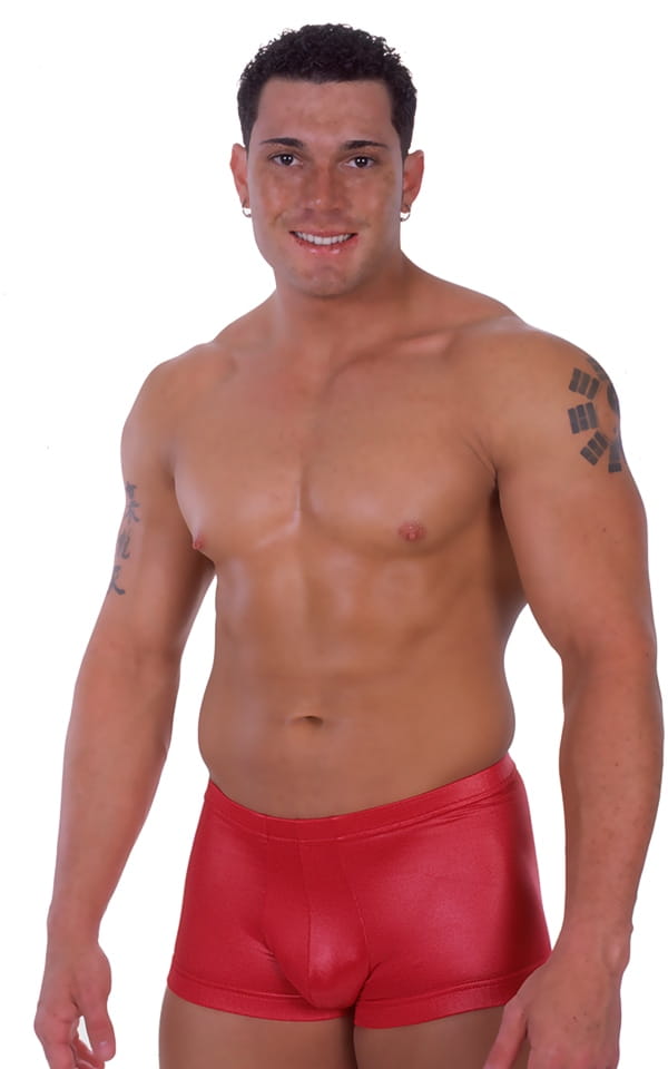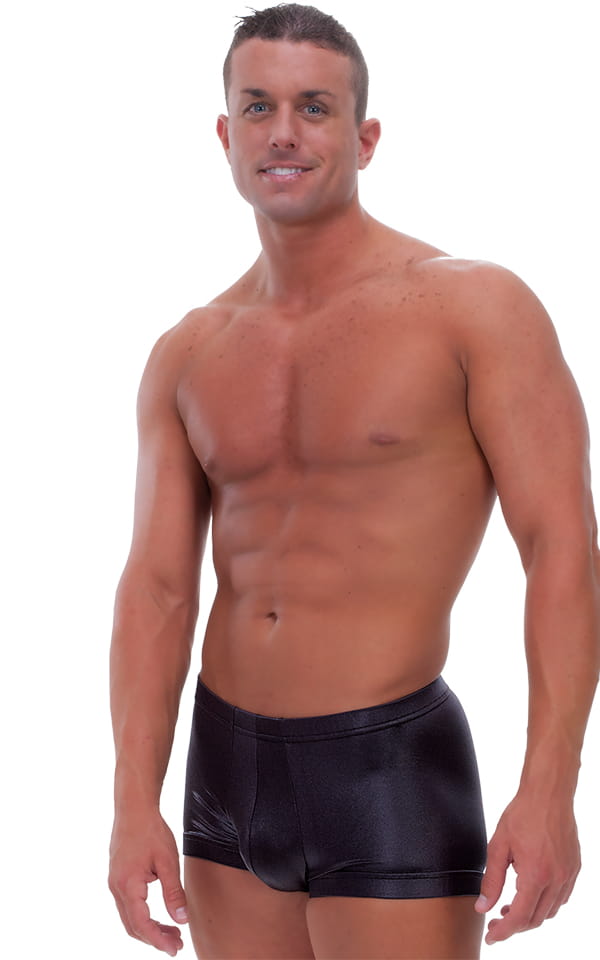 • A men's boxer swimsuit with 4 front panels for a package form fit • The front panels can be special ordered with alternate fabrics to provide contrast