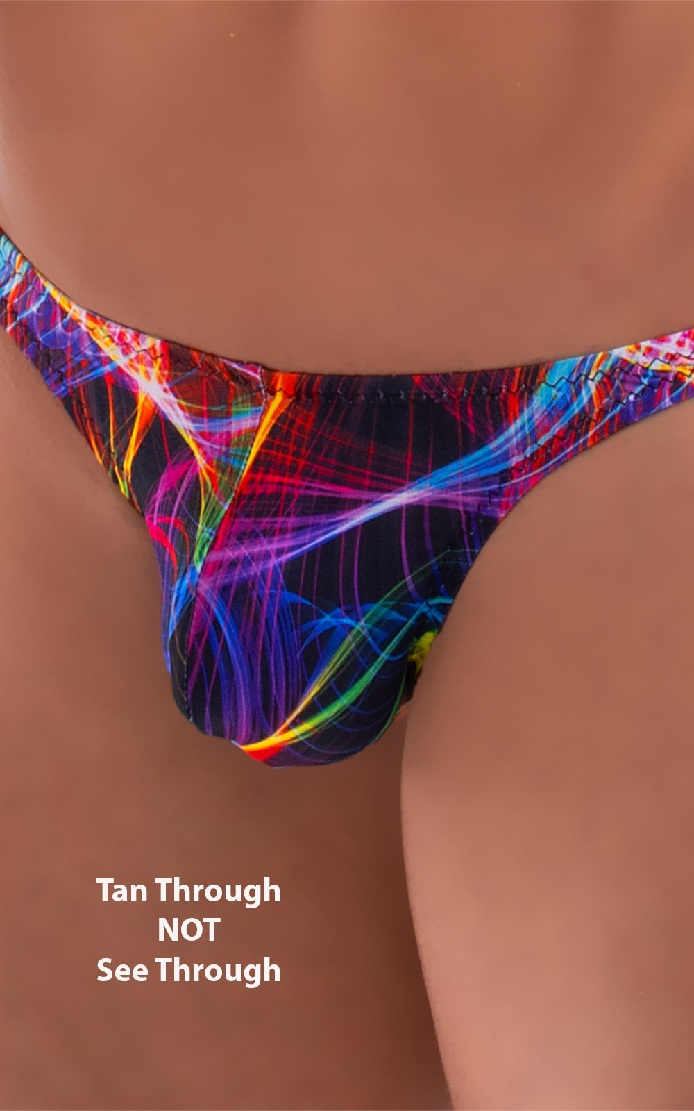 • Suits that have elastic sides and/or strings will NOT be tan-thru in those areas.