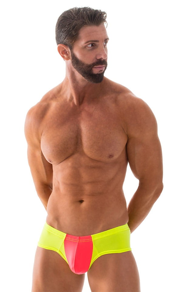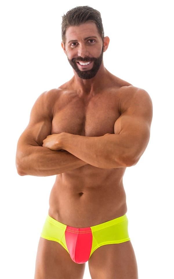 • Extremely low cut boxer swimsuit with a form fitted front pouch
