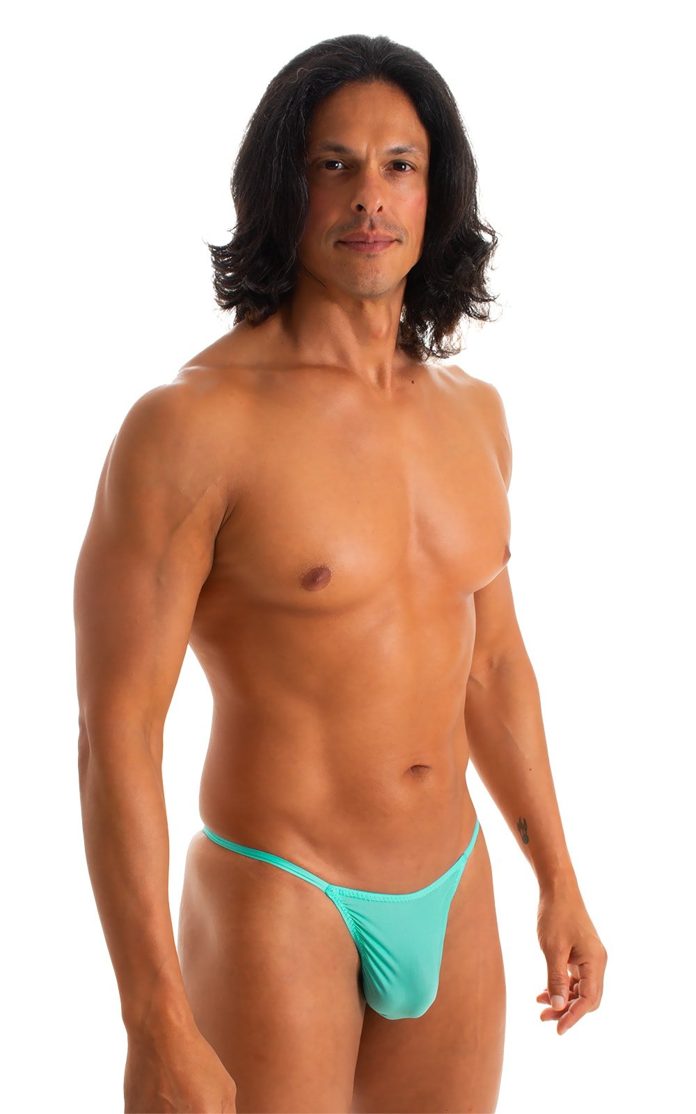M25 - Mens Skinny Side Smooth Pouch Swim Thong - Solid Sheer Semi Sheer
