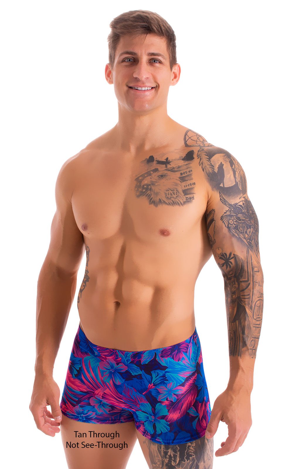 M43 - Mens Square Cut Swim Trunks - Tan Through