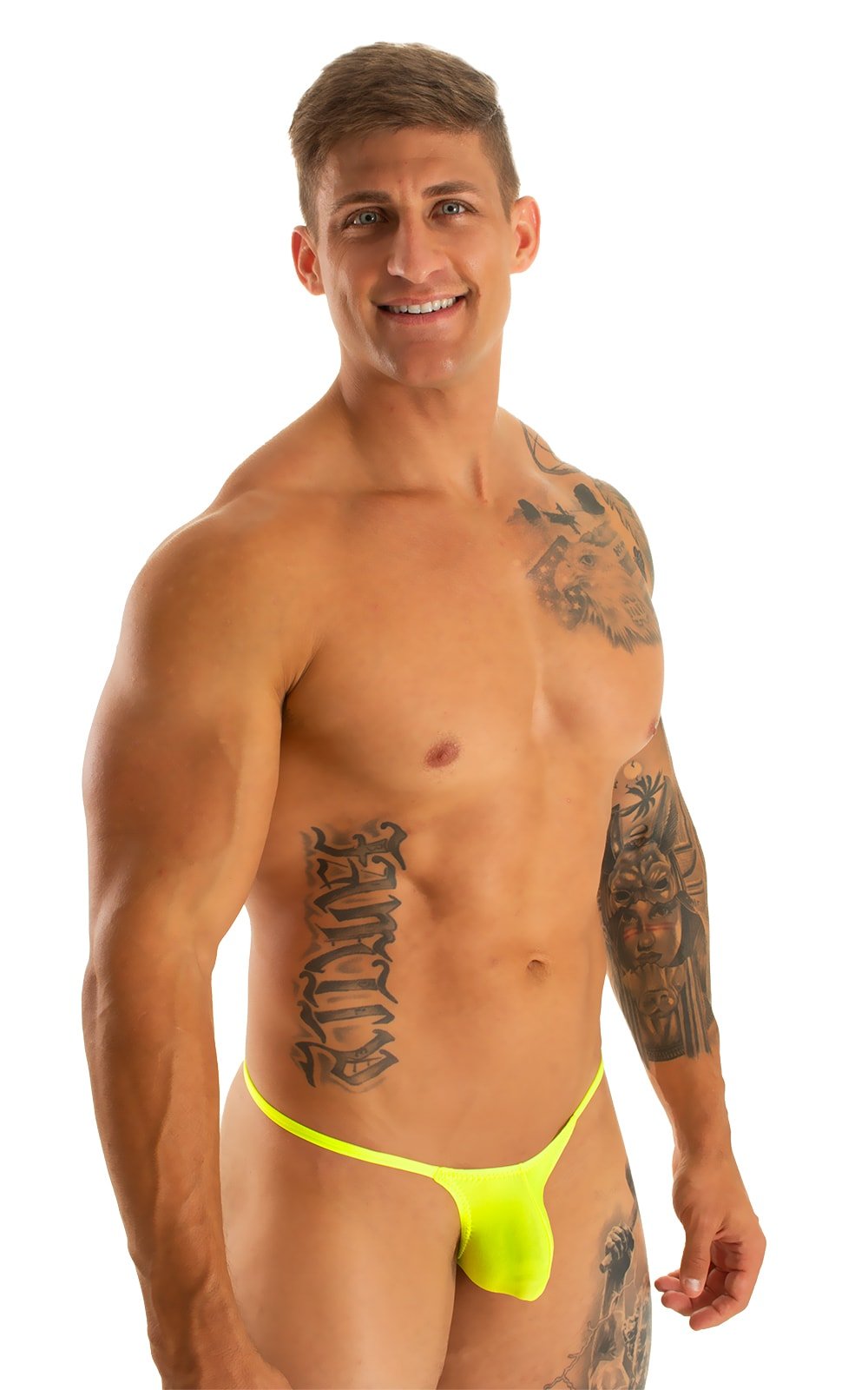 M55 - Mens Stuffit Pouch G String Swimsuit - Solid Sheer Semi Sheer